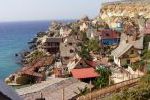 Podjechało 37 – wsiadamy. Jednak ku mojemu zdziwieniu autobus jedzie nie w tą stronę w którą powinien… Szybki rzut oka na mapę - wrong way. Zapytaliśmy panią kierowcę i okazało się, że linia 37 jeździ do Armier Bay, ale tylko w sezonie… Chociaż na przystanku nadal jest napisane Direzzjoni: Armier i o czym nie ma ani słowa na mapce zamieszczonej na dworcu Bugibba Bay. Dlatego warto za każdym razem pytać kierowcę czy na pewno jedzie w miejsce, w które chcemy jechać ;) No ale nic, przynajmniej całkiem niechcący zobaczyliśmy Popeye Village, bo tam autobus 37 dojeżdża poza sezonem. W skrócie – jest to kolorowa wioska, pozostałości scenografii po kręconym tu w latach ’80 filmie Popeye, znajdująca się nad zatoczką Anchor Bay. W pełni sezonu jest tu po prostu raj dla dzieciaków, ale założę się, że niejeden dorosły zwiedzałby tę bajkową wioskę z bananem na twarzy.